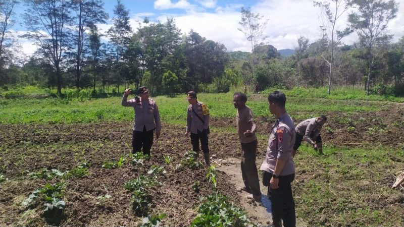 Kegiatan yang berlangsung sejak pukul 09.00 hingga 11.00 WIT ini dipimpin langsung oleh Kasat Binmas Polres Jayawijaya, Iptu Benyamin Tandipayung, S.H., didampingi KBO Sat Binmas Ipda L.A. Nababan, Kanit Bintibsos Aipda Yunus Hembring, Kanit Bhabinkamtibmas Aipda Kadir, S.Sos., serta tiga personel Sat Binmas lainnya. Turut hadir dalam kegiatan tersebut tokoh masyarakat Kampung Elagaima, Philipus Hubi, bersama anggota kelompok tani setempat.